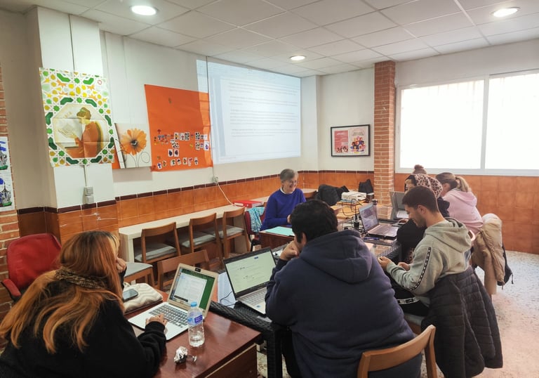A través de nuestra Escuela de Voluntariado Social, formamos a colaboradores con una mirada crítica y profunda. Impulsamos la captación y sensibilización local con los proyectos 'CODO CON CODO' en Granada y 'A TU LADO' en Jaén.